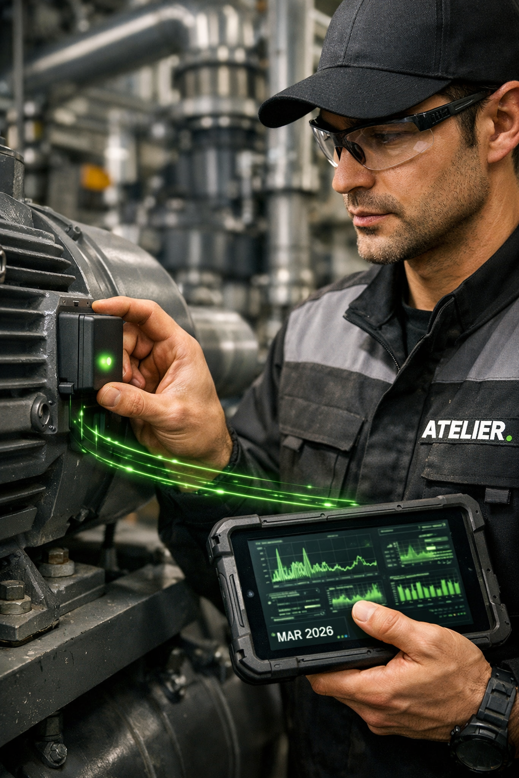 Instalación de hardware no invasivo en equipos de misión crítica. Captura de vibración, temperatura y amperaje en tiempo real en la periferia de la planta.
