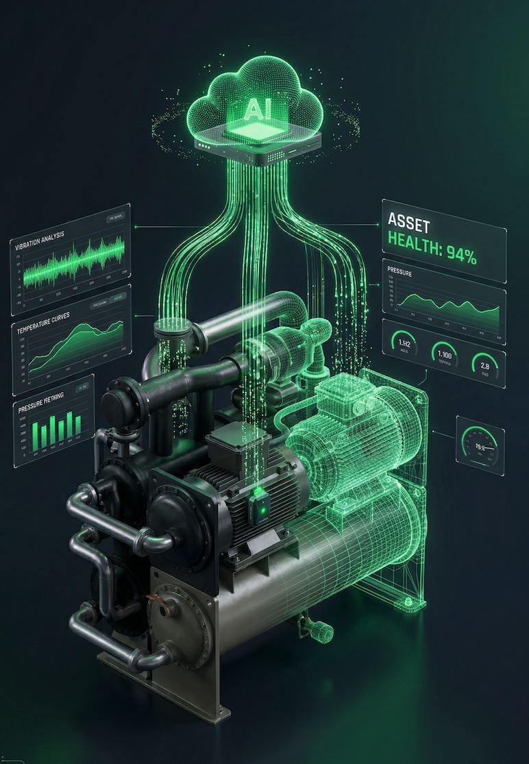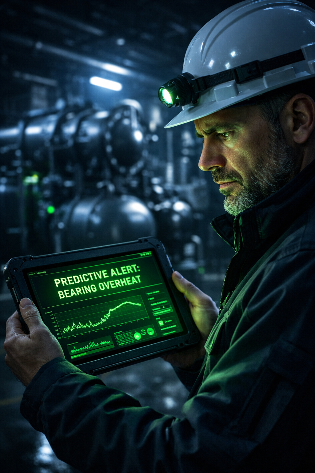 Transformamos el mantenimiento reactivo en una ventaja competitiva continua. Desplegamos Gemelos Digitales e infraestructura IoT para eliminar paros no planificados en tus plantas críticas.